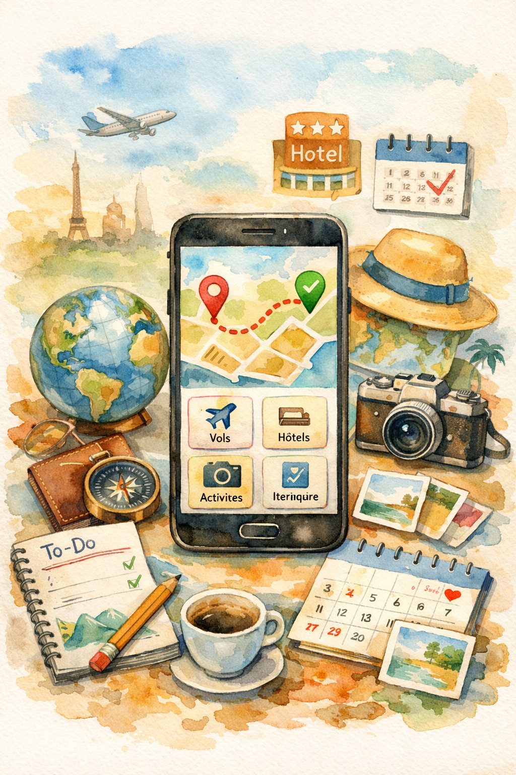 t’orienter facilement, gérer ton budget, trouver les meilleurs vols, communiquer partout dans le monde… et même garder une trace de ton aventure.