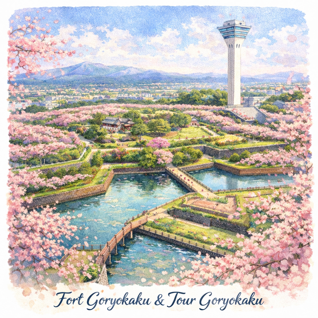 | Printemps (avril-mai) | Cerisiers en fleurs au Fort Goryokaku – ambiance pastel. |