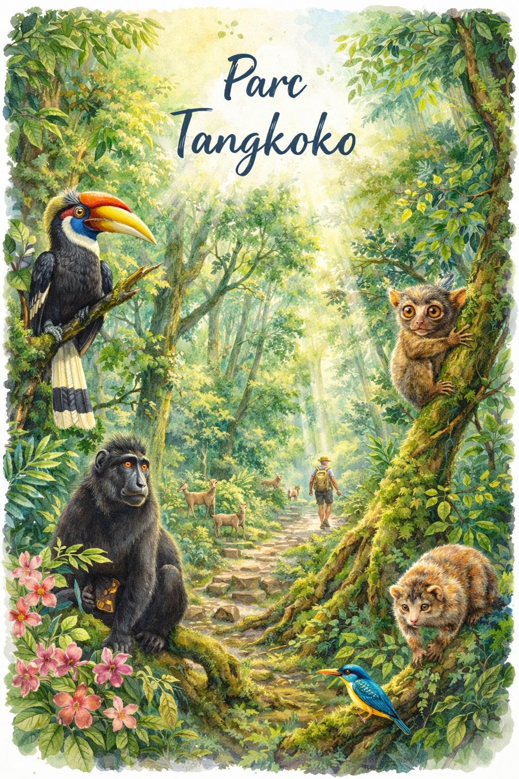 Pars pour une randonnée dans le Parc National de Tangkoko pour observer la faune locale, y compris les tarsiers.
