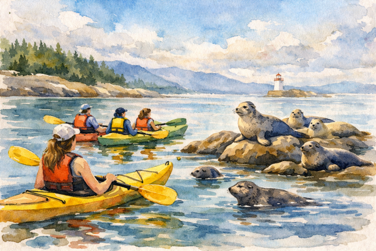 En pagayant le long de la côte, tu observeras les oiseaux marins et rencontreras de près une colonie de phoques dans leur environnement naturel.